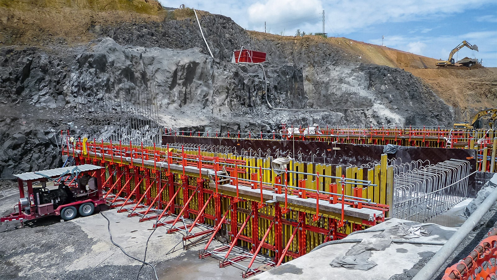 • İlk beton dökümünde SCS kalıp sisteminin, düşey destek kuşağı, ayar milleri ve ilk döküm kuşağı ile kurulumu yapılarak diyagonaller ve ankrajlar ile zemine sabitlenir.